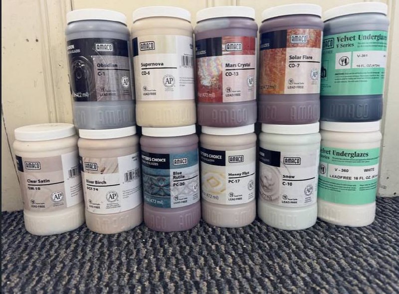 We carry a selection of AMACO glazes, trusted by ceramic artists for their rich colors, consistent results, and wide firing ranges. Perfect for both beginners and professionals, these glazes offer excellent coverage, smooth application, and stunning finishes—whether you’re working with stoneware, porcelain, or earthenware. Available in gloss, matte, and specialty effects.