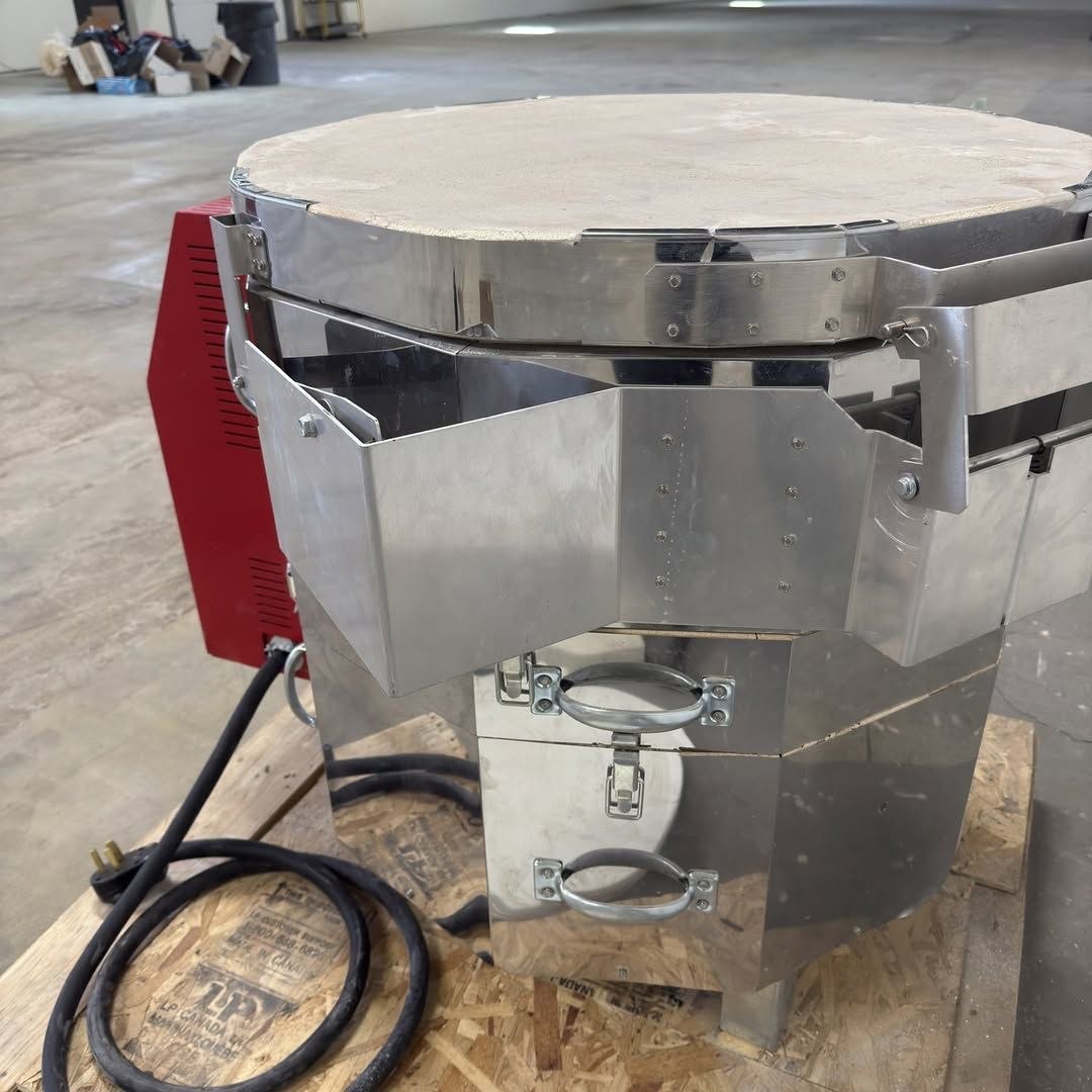 Originally impacted during shipping after only a few firings, this unit has since been expertly restored with brand-new elements and replacement firebricks. It has been thoroughly test-fired and delivers consistent, high-quality results. Minor surface scratches and cosmetic wear are present, but they do not affect performance.